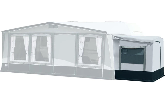 Passender Anbau für das Brand Palazzo Vorzelt zur Erweiterung des Wohn-/Stauraums. Der Anbau kann auf der rechten und/oder linken Seitenwand montiert werden. Mit separatem Eingangsreißverschluss und Lüftungsfenster. Grundfläche am Boden ca. 150 x 210 cm. Die Größe der Kederschiene beträgt Ø 7 mm.