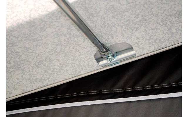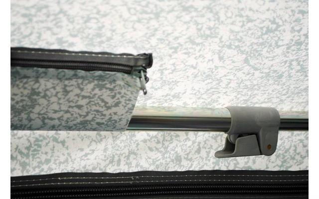 Zum Standardlieferumfang des Patio gehören 2 Seitenwände mit Fenster. Diese sind durch Reißverschlüsse abnehmbar. Powergrips, Sturmgurte und Gardinen für die Seitenwände sind gegen Aufpreis erhältlich. Das Patio wird serienmäßig geliefert mit Keder und 3 Dachhaken zur Befestigung direkt an den Wohnwagen. Die Seitenwände können Sie nicht benützen beim Patio direkt am Wohnwagen.